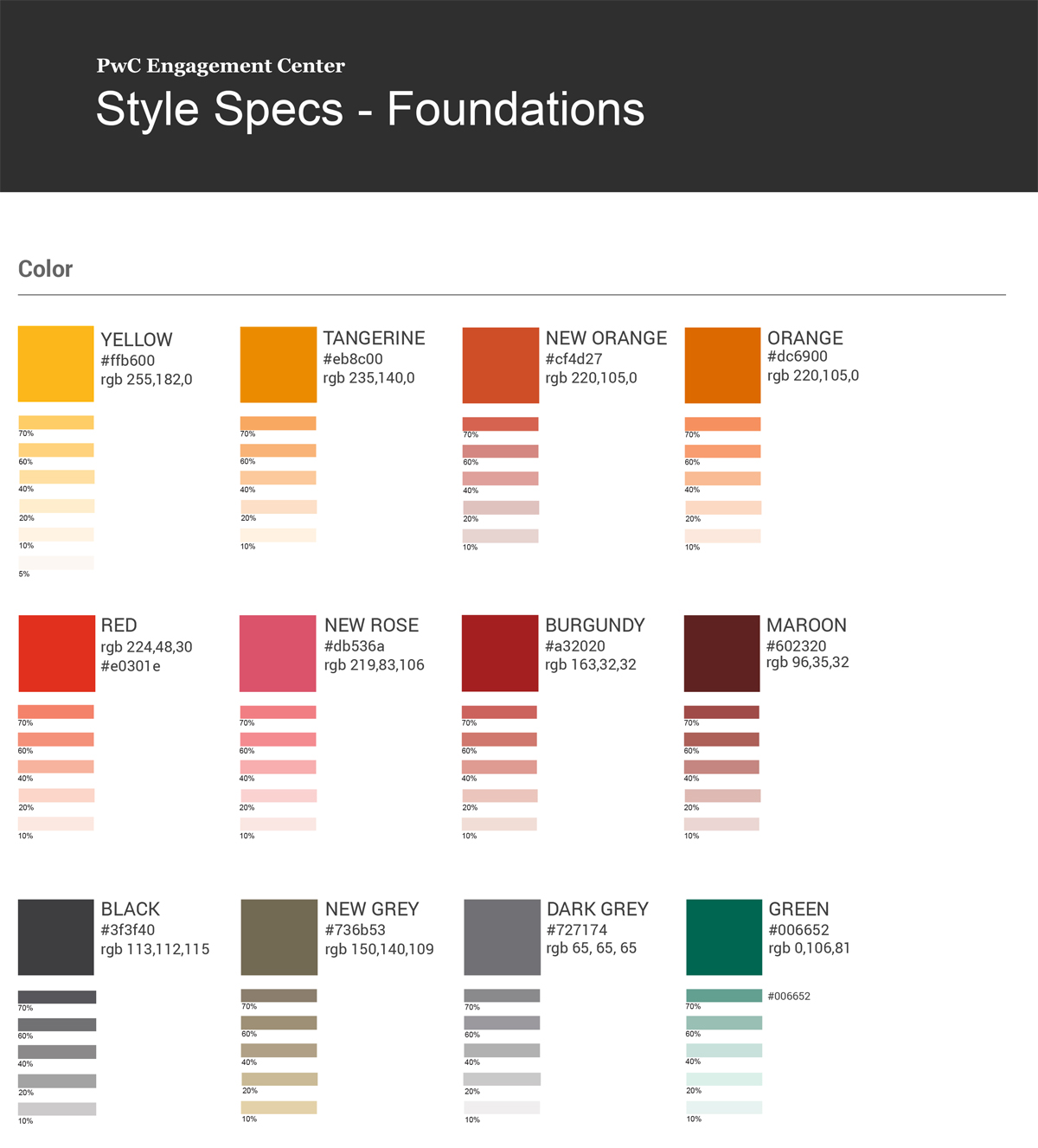 Price Waterhouse Cooper (PWC), a global risk management and financial services company was looking to establish a set of design standards for a holistic user experience and visual style across their digital products. The client’s product teams were using an inconsistent set of homegrown patterns or taking cues from brand identity guidelines intended mostly for marketing purposes.